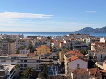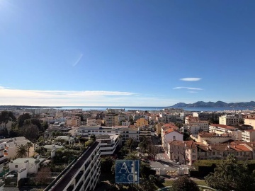Cannes, Just a 15-minute walk from the city center, this beautiful, sunny, and quiet one-bedroom apartment features a stunning 30 m² deep terrace. In perfect condition, it enjoys abundant natural light and offers a lovely sea view.