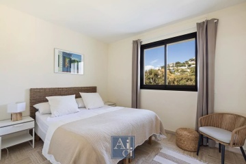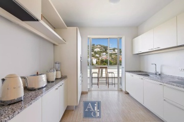 With a surface area of 93 sqm, the apartment features a generous entrance hall leading into a bright living and dining area. It includes a large south-facing bedroom with sea views and its own shower room, a rear-facing kitchen with a balcony, and a second bedroom with its own shower room and terrace, offering beautiful views over the Californie hills.