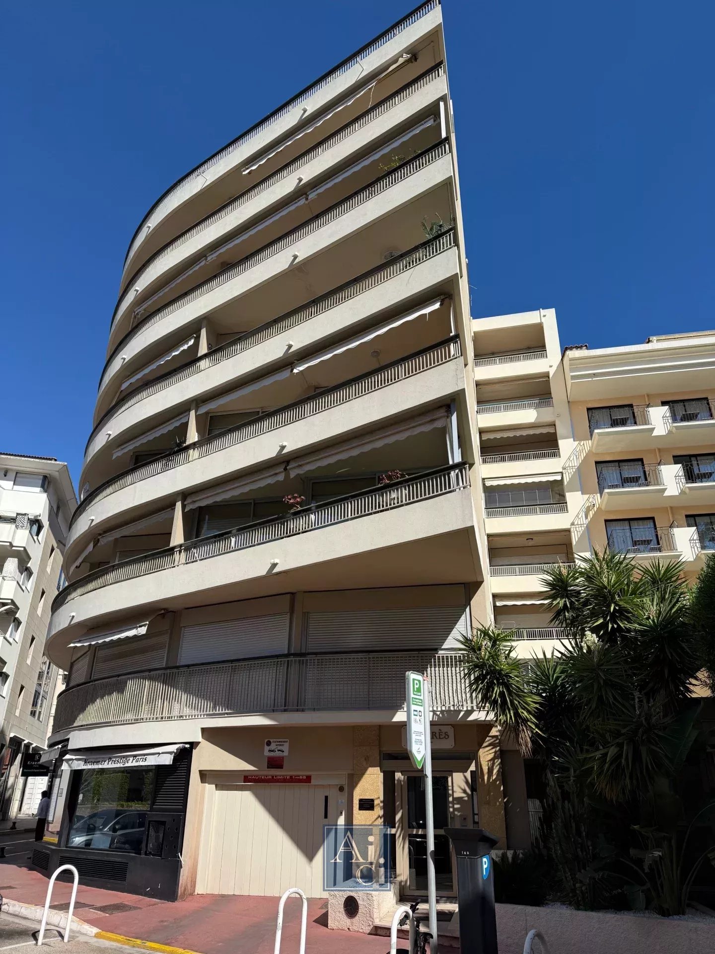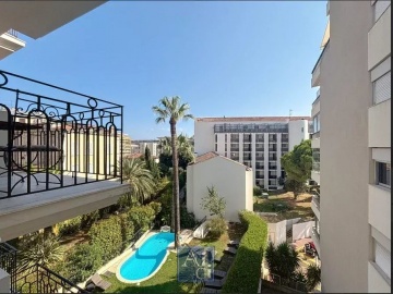 Cannes rue du Marriott. Dans une jolie résidence, beau 3 pièces neuf. Entrée, séjour ouvrant sur terrasse vue jardin, cuisine américaine entièrement équipée, 2 chambres avec 2 salles de douches et toilettes. Climatisation. Wifi.