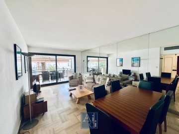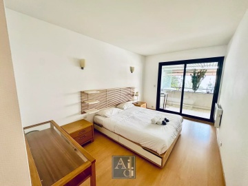 Cannes Résidence du Gray d'Albion. A 3 minutes à pieds du Palais des Festivals. Spacieux 2 pièces avec terrasse. Entrée avec toilettes invités, séjour avec canapé convertible, cuisine indépendante équipée, chambre avec lit double, salle de bains avec toilettes. Toutes les pièces ouvrent sur la terrasse. Climatisation. Wifi.