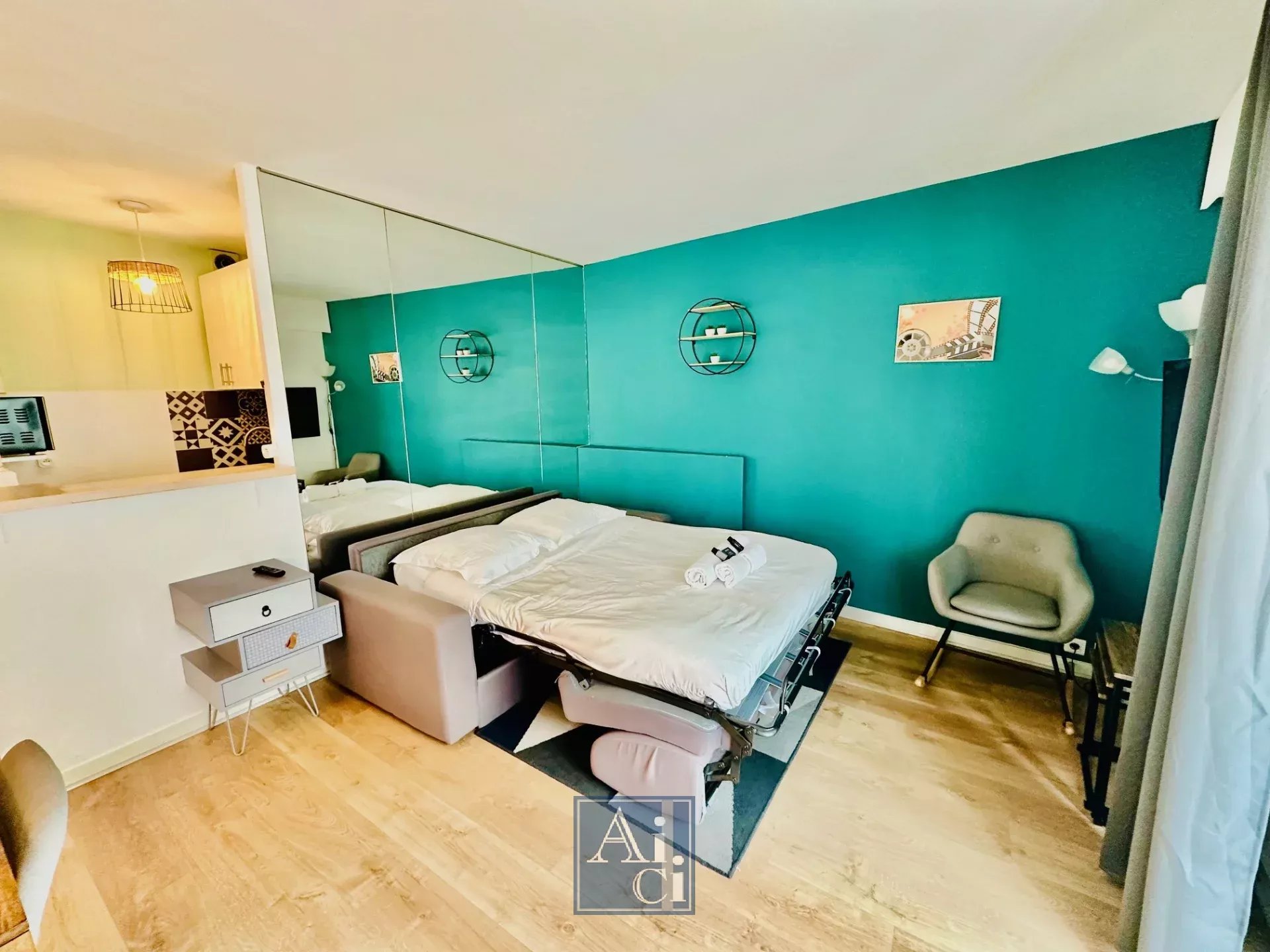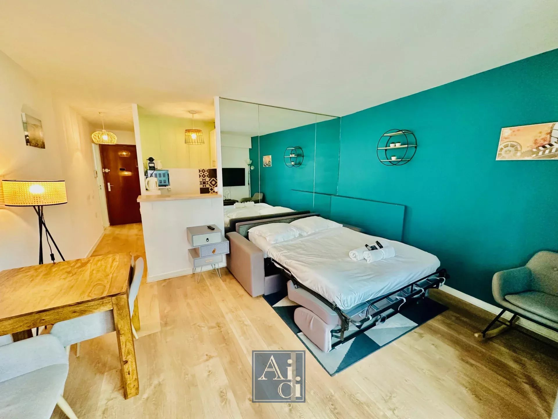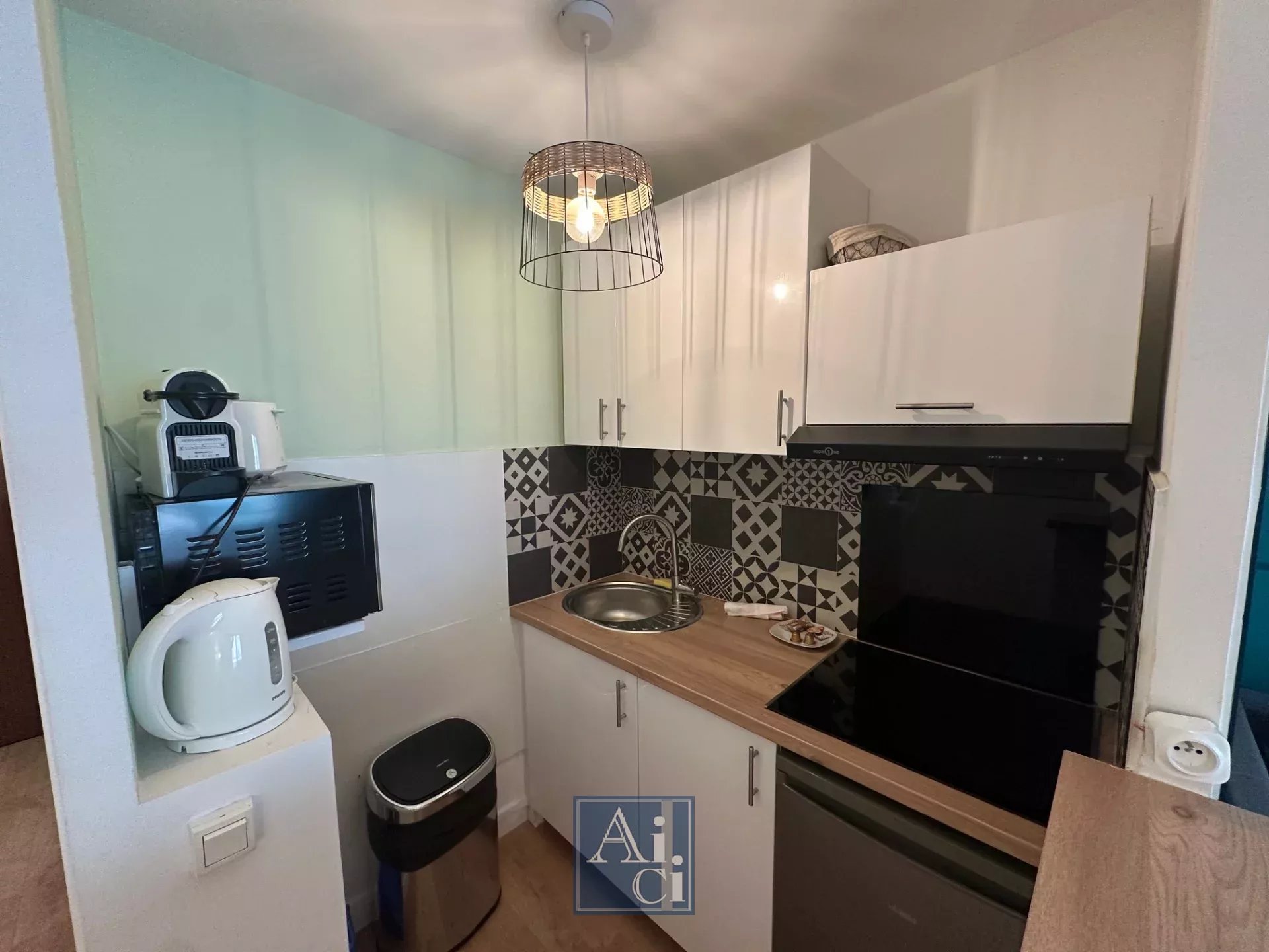 Charmant studio entièrement rénové, offrant une entrée, un séjour lumineux avec cuisine semi-ouverte entièrement équipée, une salle d'eau moderne avec WC. Le logement dispose de la climatisation et d'une connexion Wifi.