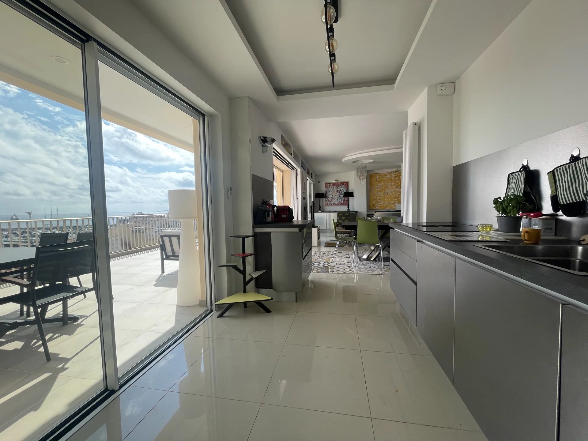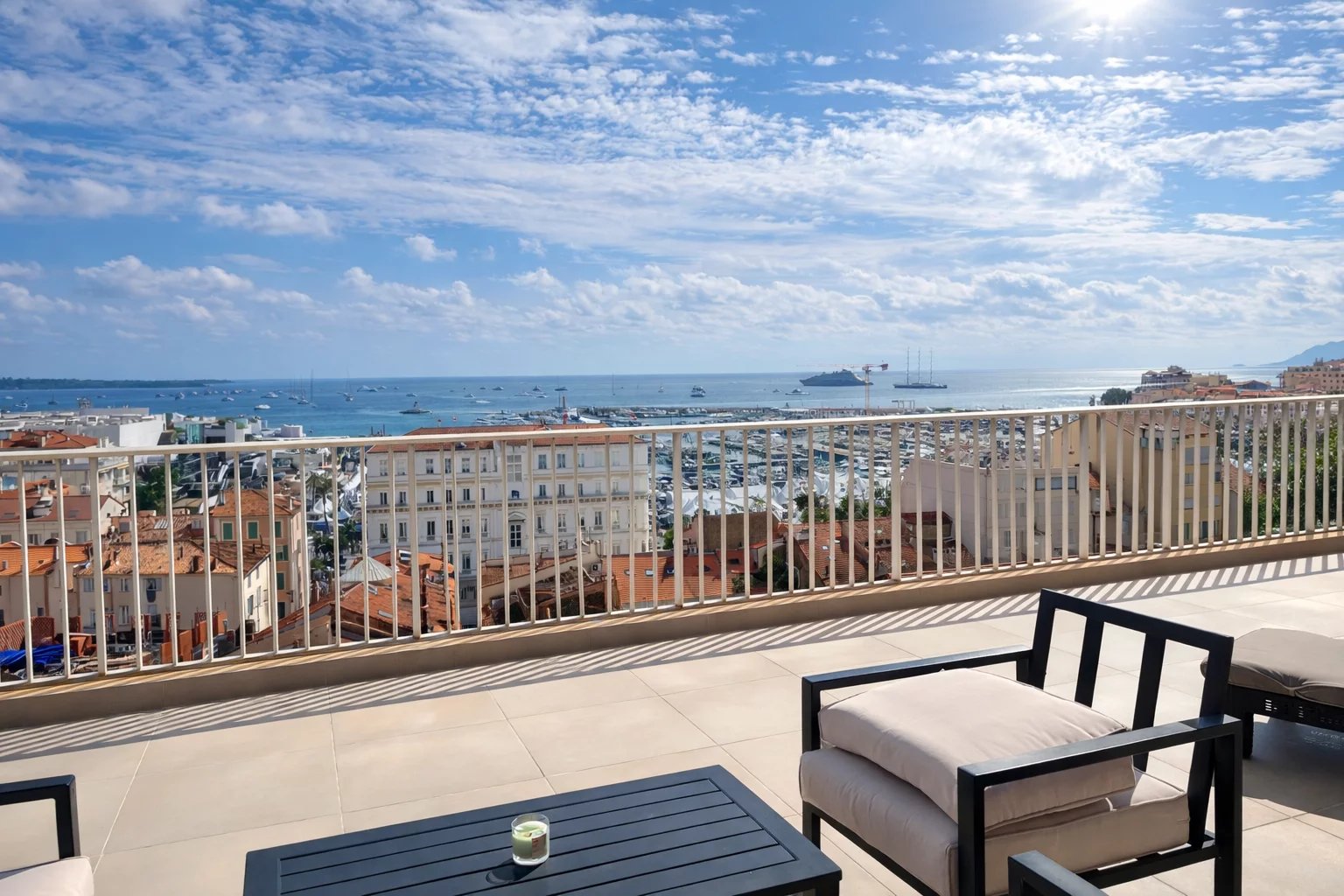 Véritables joyaux de ce bien, deux somptueuses terrasses de 46 m² et 40 m² prolongent les espaces de réception et offrent une vue panoramique imprenable sur la Méditerranée et le Vieux Port de Cannes. Espaces de contemplation et de convivialité, elles invitent à savourer chaque instant, entre ciel et mer, dans un cadre absolument privilégié.